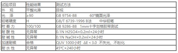 2,附着力、耐冲击性、柔韧性等机械性能优异,并有良好的耐候性,最大特点即适合高温烘烤体系又适合常温自干体系。